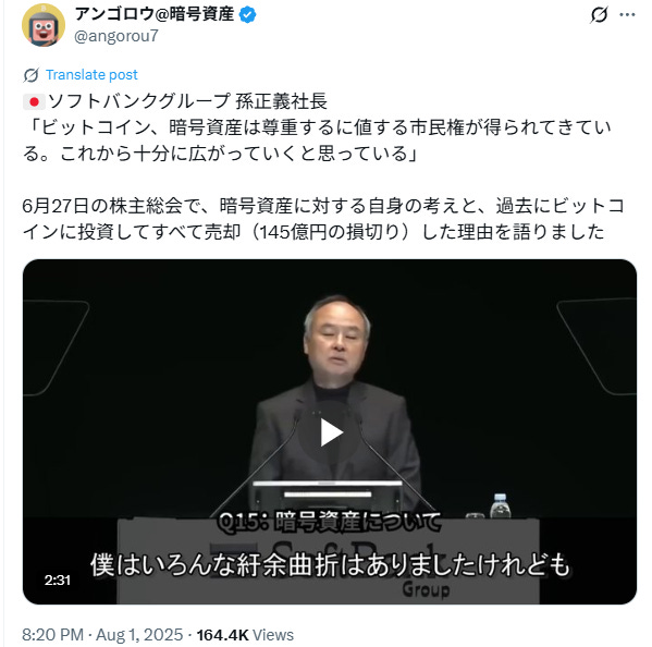 先日はソフトバンク会長の孫正義氏が「ビットコインはもうすでに市民権が得られてきている」と堂々と話したり、堀江貴文氏(ホリエモン)がYouTubeでビットコインについて詳しい話をしていたり、一般的にも徐々にオープンになっているようで嬉しいです。まあ、孫氏はTWENTY ONE CAPITAL(XXI)に出資しているからというのはありますが、もうビットコインは社会的に無視できない存在のはず。ようやくメインストリームになってきた感じがします🤩