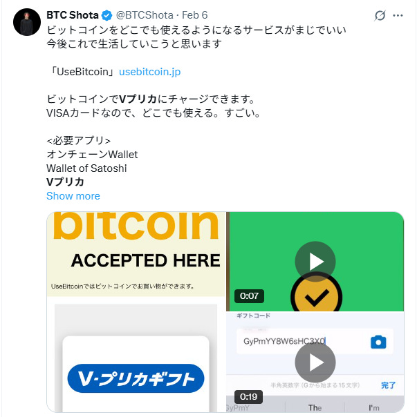 普段ほぼ日本にいないので略語の商品名などに非常に弱いのですが、Vプリカとは、Visaプリペイドカードの略だったんですね。日本でビットコインを使って自由にショッピングを楽しむためには、とても便利なツールだそうです。詳しくは、UseBitcoin.jpのウェブサイトをチェックしてみてください。